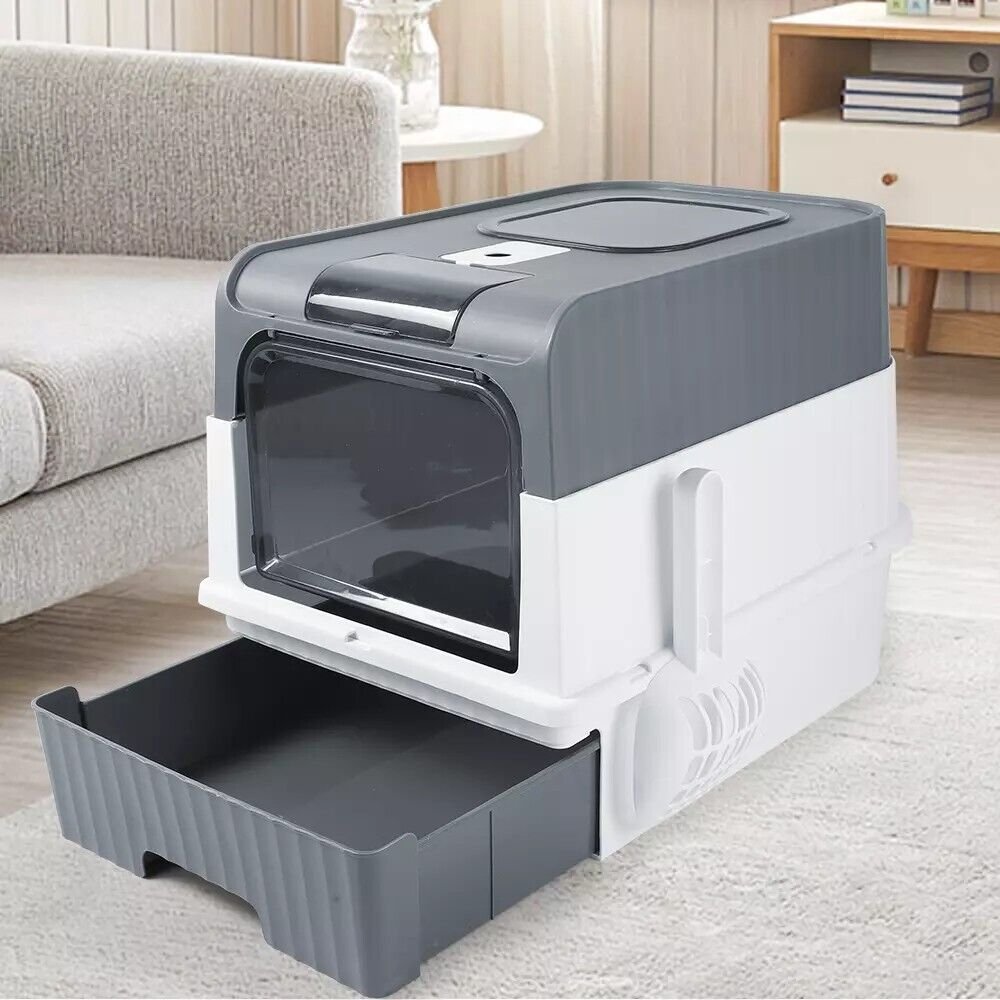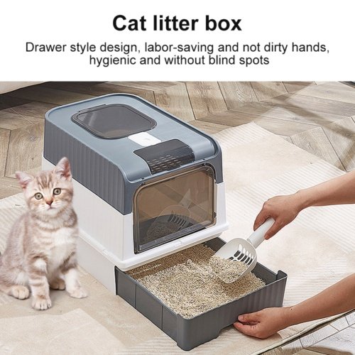 The Grey Large Cat Litter Box offers a convenient and hygienic solution for your feline friends. Its drawer-style design allows for easy cleaning, while the anti-splashing feature keeps your floors clean and mess-free.